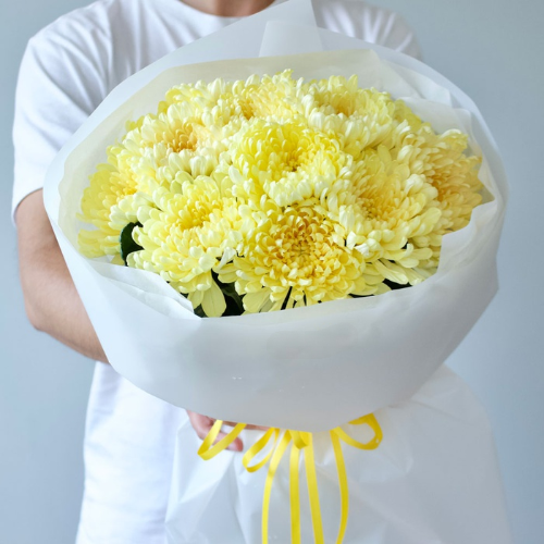 Закажите букет из жёлтых одноголовых хризантем прямо сейчас — подарите себе и близким немного солнечного настроения!