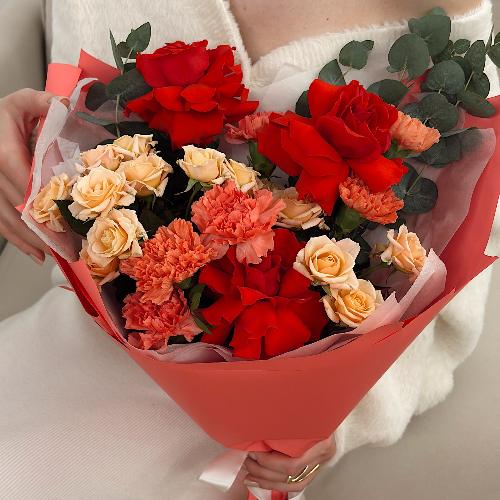 Подарите незабываемые эмоции с роскошным букетом алых роз — символом страсти и искренних чувств! Элегантная композиция создана для особых моментов: признания в любви, годовщины, Дня святого Валентина или просто чтобы порадовать любимую женщину.