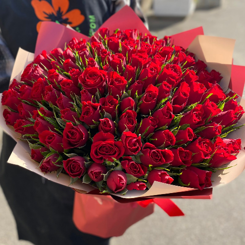 Яркий букет из 101 красной кенийской розы – роскошный подарок для дамы сердца, родственницы, девушки, которую вы пригласили на свидание и хотите произвести впечатление. С помощью такого презента вам это точно удастся! Купить розы Кения в СПб – это отличное решение, ведь такие растения отличаются красивыми бутонами идеально правильной формы, нежным ароматом и долговечностью (нужно лишь регулярно менять воду).