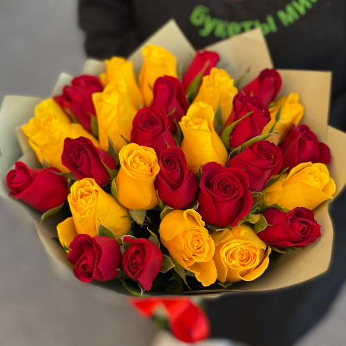 • Букет из 25 желтых и красных роз "Кения"