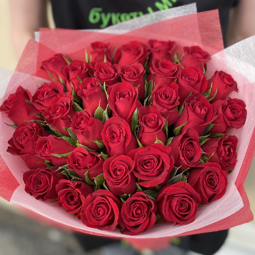 Букет из 35 красных роз - это приятный цветочный сюрприз с доставкой. Если Вы хотите поднять настроение близкому человеку или просто сделать приятно, несомненно, это хороший выбор!