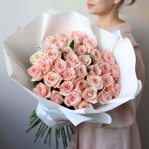 Букет из 35 роз сорта «Талея» подходит для необходимого повода проявить внимание и нежность своих чувств. Особенность бутонов заключается в нежно-кремовом цвете, который визуально согревает и поднимает настроение.