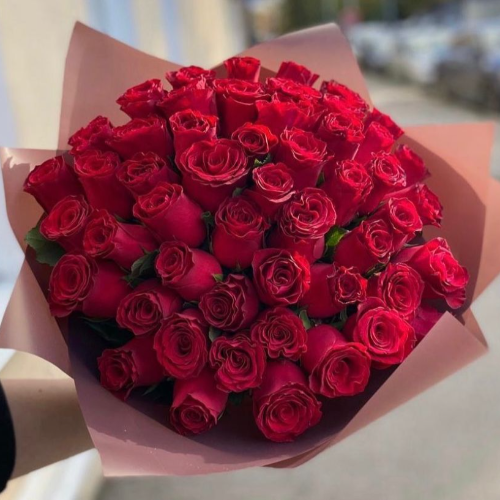 Букет из 51 розы красного цвета. Шикарные розы с хорошим бутоном, доставленные напрямую из Эквадора.