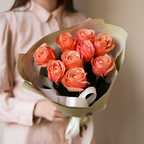 Нежная композиция из эквадорских роз. Она обрамлена в стильную упаковку с контрастной полосой и декорирована лентой в тон. Символизирует преданность, уважение, влюбленность. Подходит для свадебных торжеств, свиданий и признаний в любви.