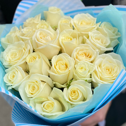 Благодаря цвету эта композиция приковывает к себе внимание и пробуждает ассоциации. Деликатные белые розы – вне времени. Они хороши для романтического поздравления и признания! 21 роза – это ваша эмоция в чистом виде! Белые цветы привнесут своё свежее дыхание в свадебную церемонию, выскажут уважение другу, поздравят супругов с 25-летием брака или внуков с совершеннолетием. Есть множество возможностей преподнести полностью персонализированный букет белых роз.