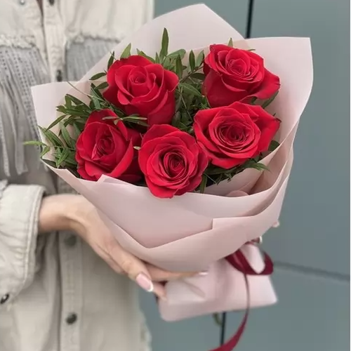 Букет из 5 красных роз (Эквадор) и фисташки