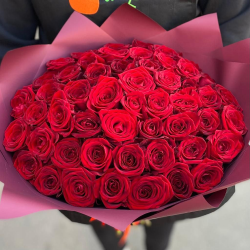 Роскошный букет “Красная мечта” из 51 красной розы - воплощение страсти и элегантности. Изысканная композиция из свежесрезанных роз насыщенного бордово-красного оттенка станет идеальным подарком для особого случая.