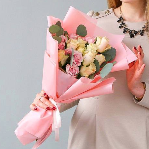 Не находите слов, чтобы сделать комплимент прекрасной даме? Подарите этот букет из красных роз и белых фрезий, в окружении игривой зелени – и всё станет ясно! Небольшой аккуратный букет не слишком вычурен, а значит, его можно подарить в любой день, по поводу и без. В любом случае он порадует своего адресата и передаст Ваше тайное послание.