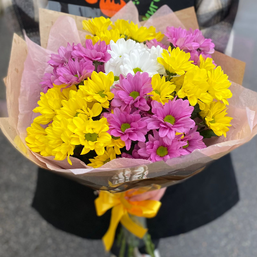 Этот небольшой букет способен унести в царство фантазии своих романтичных адресатов. Нежнейшие хризантемы разных цветов, чья палитра создает неповторимую цветочную сказку в одной небольшой композиции. Такой букет послужит замечательным выбором для свидания с прекрасной девушкой!