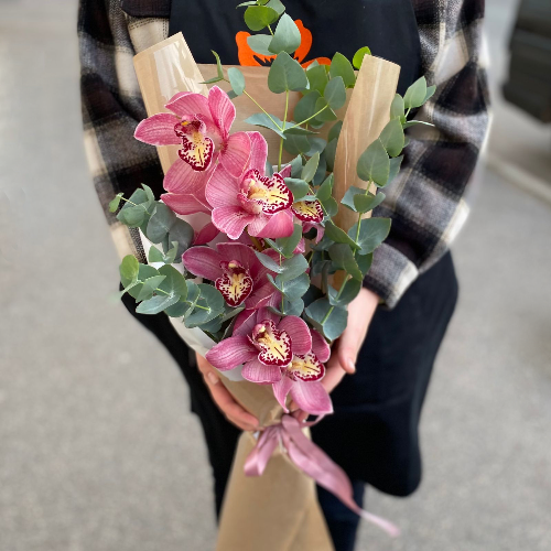 Изысканный и утонченный букет для настоящих ценителей. Ничего лишнего, только подлинная красота орхидеи, подчеркнутая зеленью аспидистры, белыми тюльпанами и гипсофилой. Обратите внимание, в состав букета входят тюльпаны -сезонные цветы, которых может не быть в наличии! В этом случае наши флористы подберут развнозначную замену.