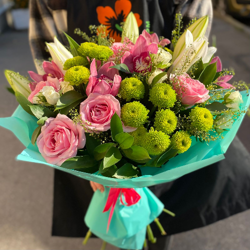 Все краски солнечного летнего полудня словно собраны в этой композиции – яркие розы, и игривые шарики хризантем, оттененные свежестью лилий и орхидей. Букет освежит любой интерьер и принесет ощущение легкости. Подарите его на День рождения или просто, чтобы поднять настроение друзьям, родителям, коллегам – в благодарность они обязательно поделятся с Вами своей радостью!