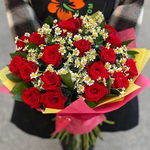 Букет из благородных роз, оттененных изысканной зеленью – для тех, кто ценит вечную классику, для тех, кому действительно есть, что сказать. Такая композиция станет отличным подарком, как для самых любимых, так и в знак благодарности и уважения.